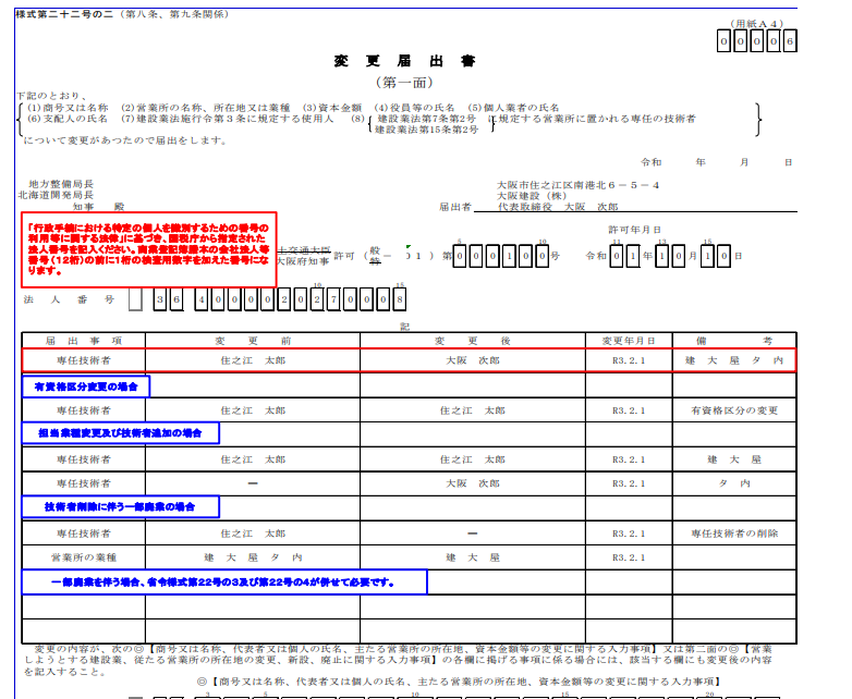 ・専任技術者の氏名の変更